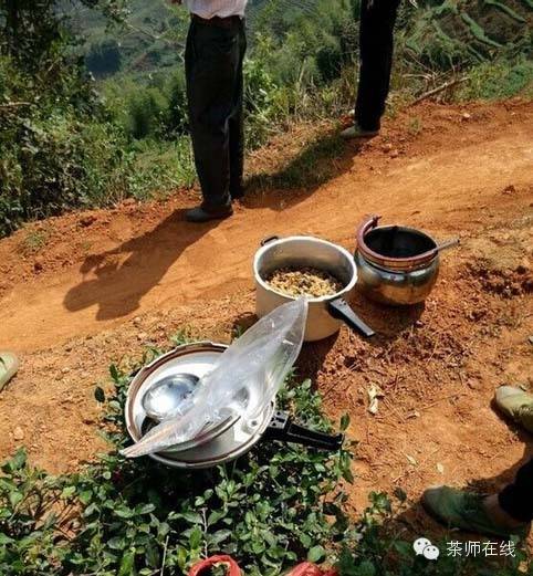 因为茶山离家远,所以吃饭问题只能在山上解决,一锅咸饭,一锅汤