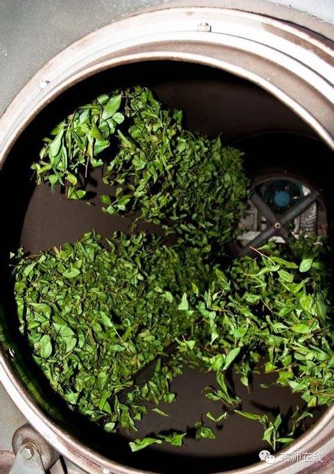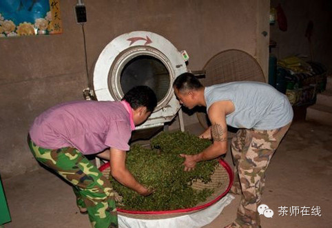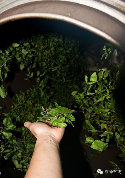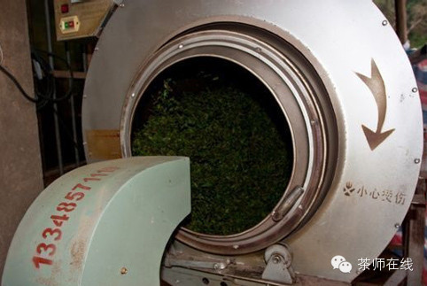 一般这样一锅是三斤茶青,用的是滚筒杀青机