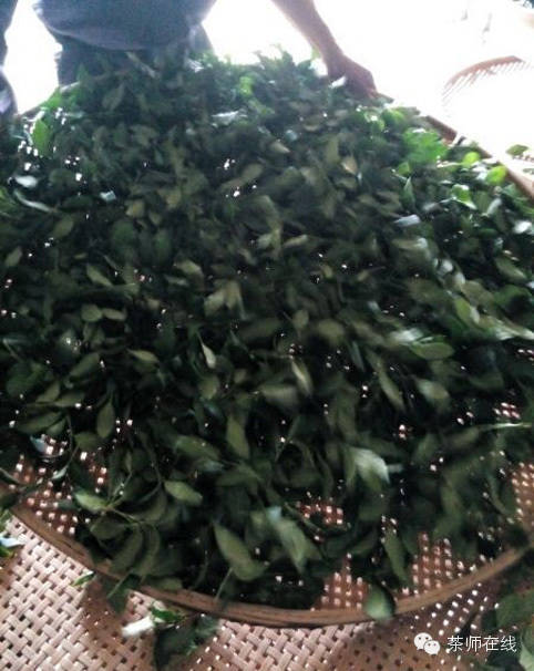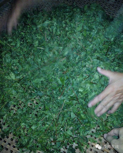 鲜叶晒青到一定的绵软度就可以摇青了。摇青其实就是为了将枝梗的营养成分均匀地输送到叶片,也使鲜叶的水分因此散发掉一部分