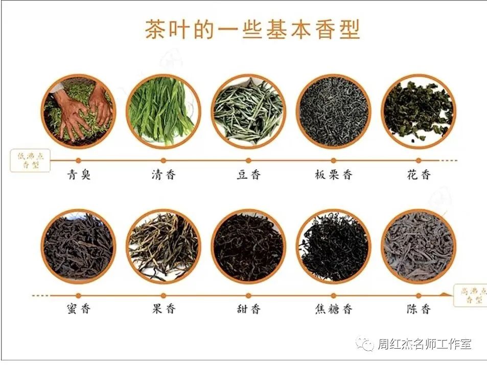 嗅闻干茶的香气。高低——浓淡,香型——清香、甜香、花果香等;