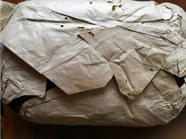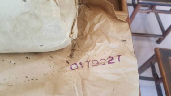 3、未拆牛皮包,如何分辨老白票与新白票,挑出牛皮包的内票后,区分老白票与新白票是看茶叶外面的包装纸,新白票的包装纸用的是手工黄纸,颜色和现在包藏茶的包装纸是一个黄色,老白票包茶叶的包装纸,雅安茶厂用的是和牛皮纸颜色相同或者稍偏白的手工棉纸,荣经用较薄的牛皮纸包装,数量可以忽略不计,天全茶厂用的包装纸是较薄颜色较深的牛皮纸。