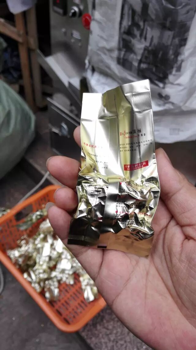 “三无”茶叶穿“马甲”卖在一些茶铺中,为了让酒楼采购的茶卖相更好些,茶商还会推荐精美的小茶包袋,每个袋子的容量在8-15g左右。售价为5元100个。这些包装上的标识基本除了公共茶叶品类的信息外再无其他应当依法标注的信息。“随便你想装什么茶进去都行。”