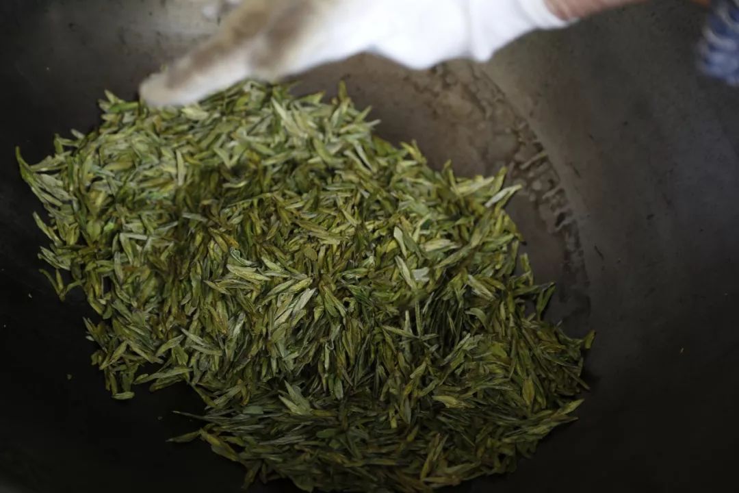 这是绿茶加工最核心的工序。手工杀青大约需要230-270度锅温,所需时间12-15分钟。杀青结束后的茶叶需进行4-8小时的回潮。