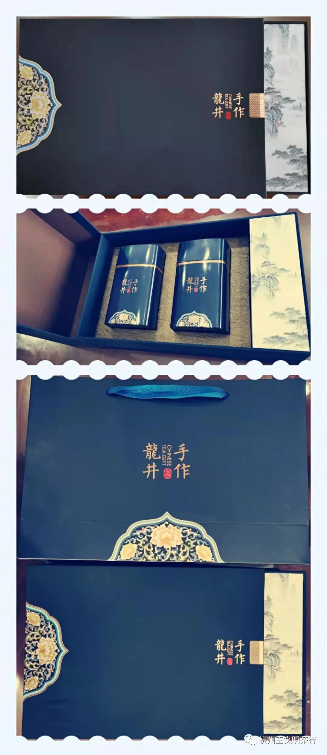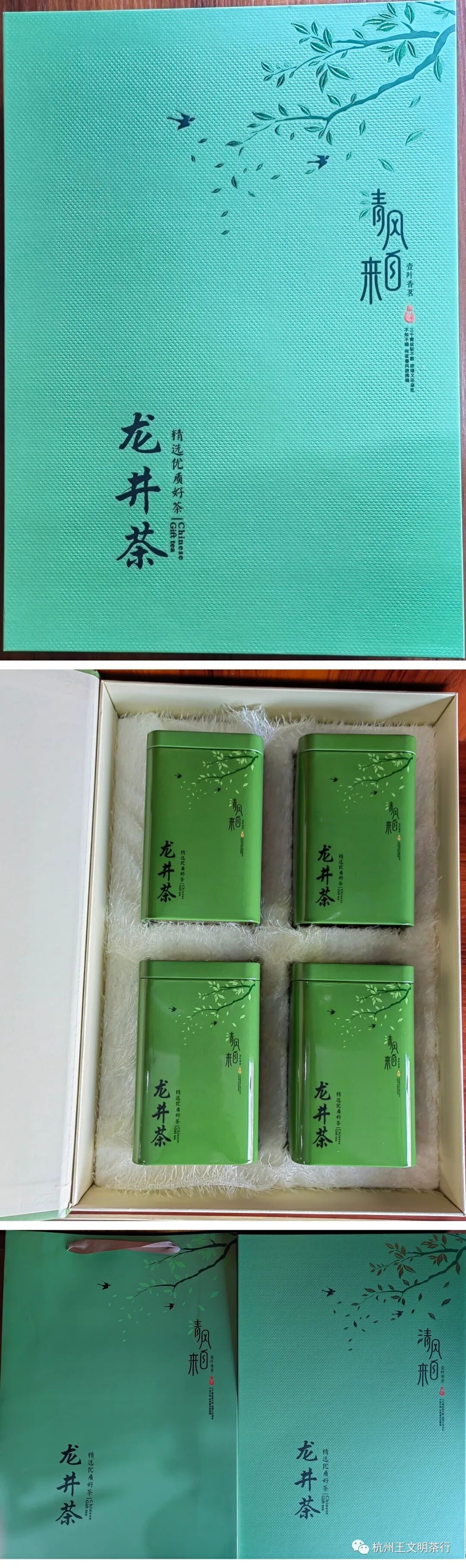 内装125克同款铁罐2个,并配同款外提袋一个,可装龙井茶250克,外部尺寸(cm):35*23*9;净重:1.2公斤