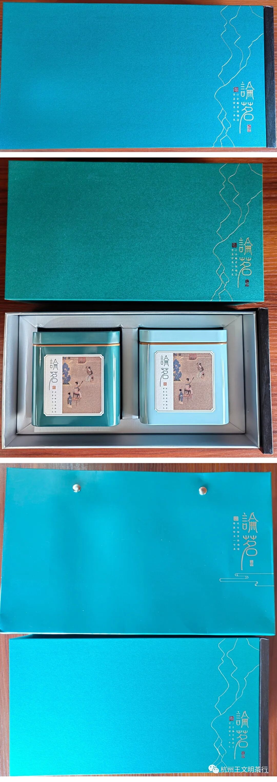 内装125克同款铁罐2个,并配同款外提袋一个,可装龙井茶250克,外部尺寸(cm):35*22.5*9;净重:0.738公斤