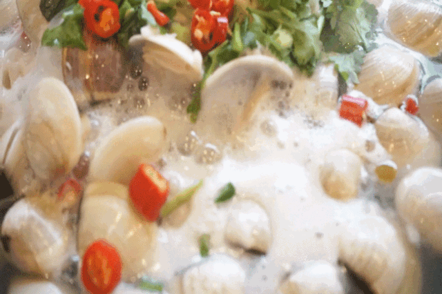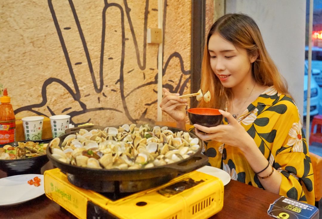 最喜欢跟闺蜜过来点上一锅,一边看着一只只卜卜贝在蒜蓉浓汤中逐渐沸腾、开壳,一边聊聊生活琐事,真的很幸福。