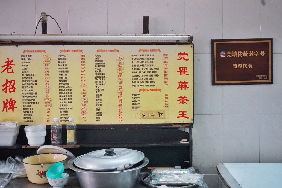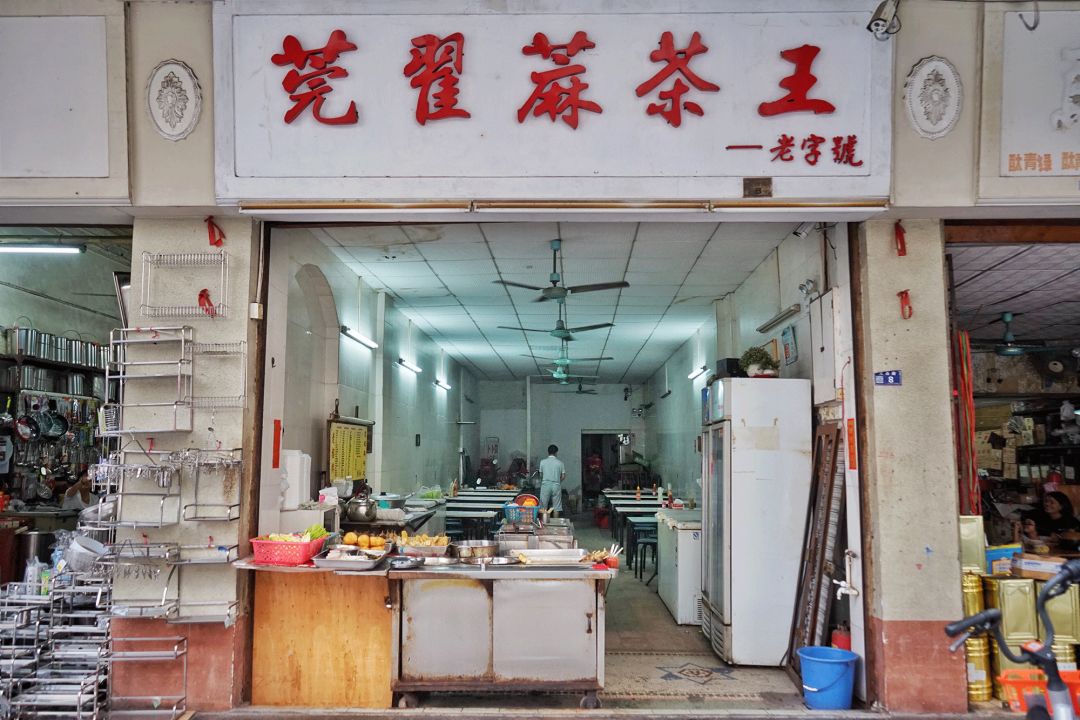 莞翟蔴茶王的首店就在老莞城的骑楼下,流逝的时光对它没少折腾,斑驳的环境无处不透露着岁月的痕迹。
