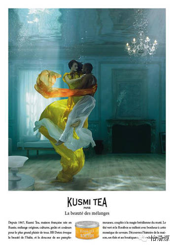首先要说,这是我见过最性感最浪漫的茶叶广告创意!酷毙了好吗仙男仙女在水里纠缠!像跳舞一样!像泰坦尼克号一样!像小美人鱼一样!真心美美美!请屏住呼吸好好欣赏~~ 稍微介绍一下,KUSMI TEA已经有140多年历史,是一个家喻户晓的法国品牌,必须再感叹一下法国果然是个太浪漫的国家!