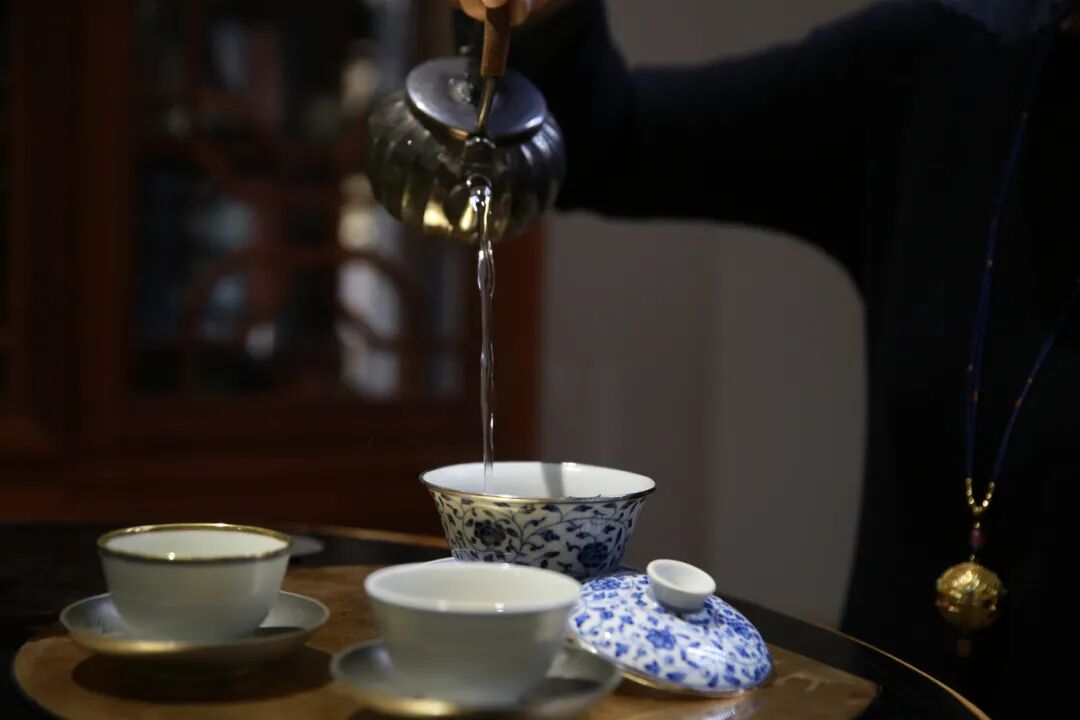 刘禹锡曾在《尝茶》中写道:“今宵更有湘江月,照出菲菲满碗花,”来描述月下饮茶时,茶碗中的朵朵茶叶在月光温婉下的清丽美好;邱云霄也在《蓝素轩遗茶谢之》写过“欲访踏歌云外客,煮烹仙掌露华香”,来表达饮茶香气,飘飘然而欲成仙去,照应着古人对茶“余甘氏”“仙芽”的美称。