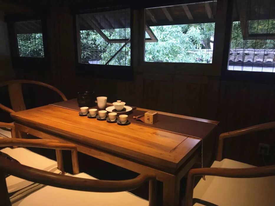 一楼贩卖自制的茶叶、茶器甚至是古色古香的衣着。茶馆开在二楼,接着灵隐和三天竺的灵气和禅意,在此品茶就是种得天独厚的享受。