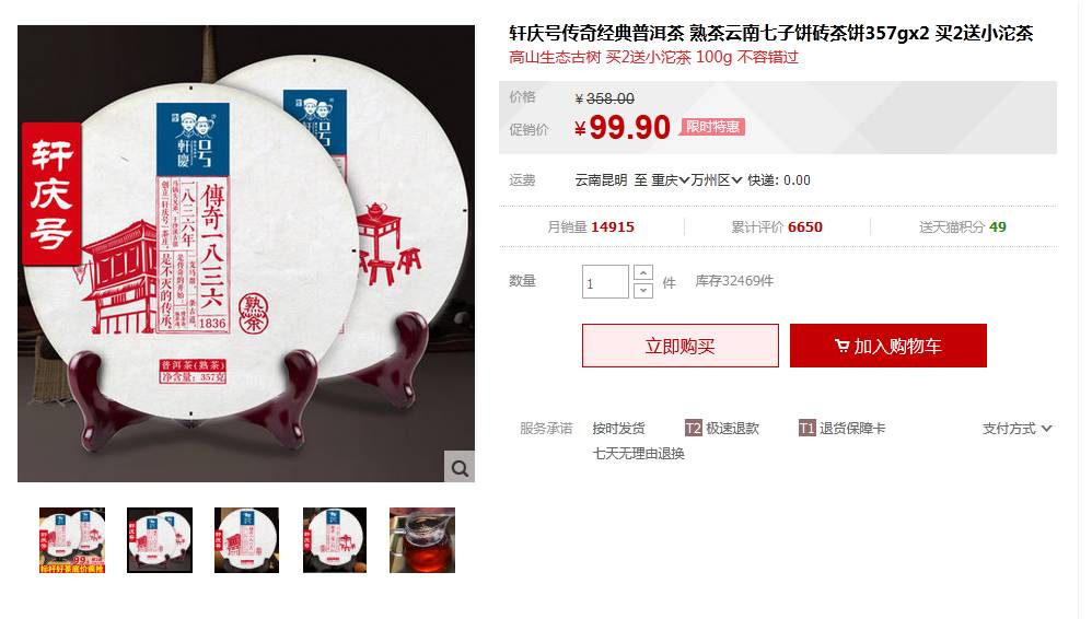 NO.1 轩庆号旗舰店的传奇一八三六的七子饼熟茶