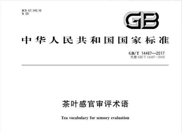《茶叶感官审评术语》(GB/T 14487-2017),该标准修订主要增加了黑茶中六堡茶、紧压乌龙茶、紧压白茶等的术语,满足创新品种类茶叶的需求。