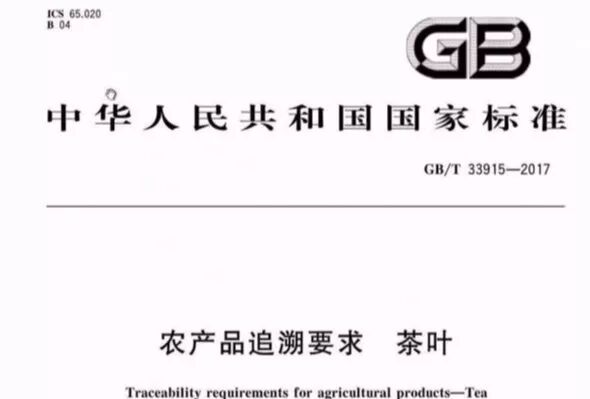 《农产品追溯要求 茶叶》(GB/T 33915-2017)规定了茶园管理及茶叶生产、茶叶加工、茶叶流通、茶叶销售各环节的追溯要求;