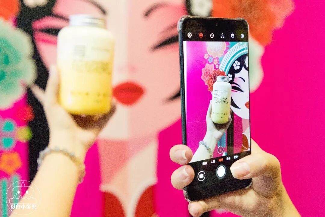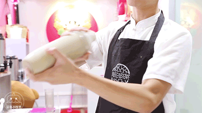 将一整颗芒果肉捣烂后,再沿着杯壁加入特制的酸奶奶盖,把杯子弄得“脏脏的”。又圆又胖的瓶子,女生都喜欢拿来拍个照~