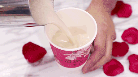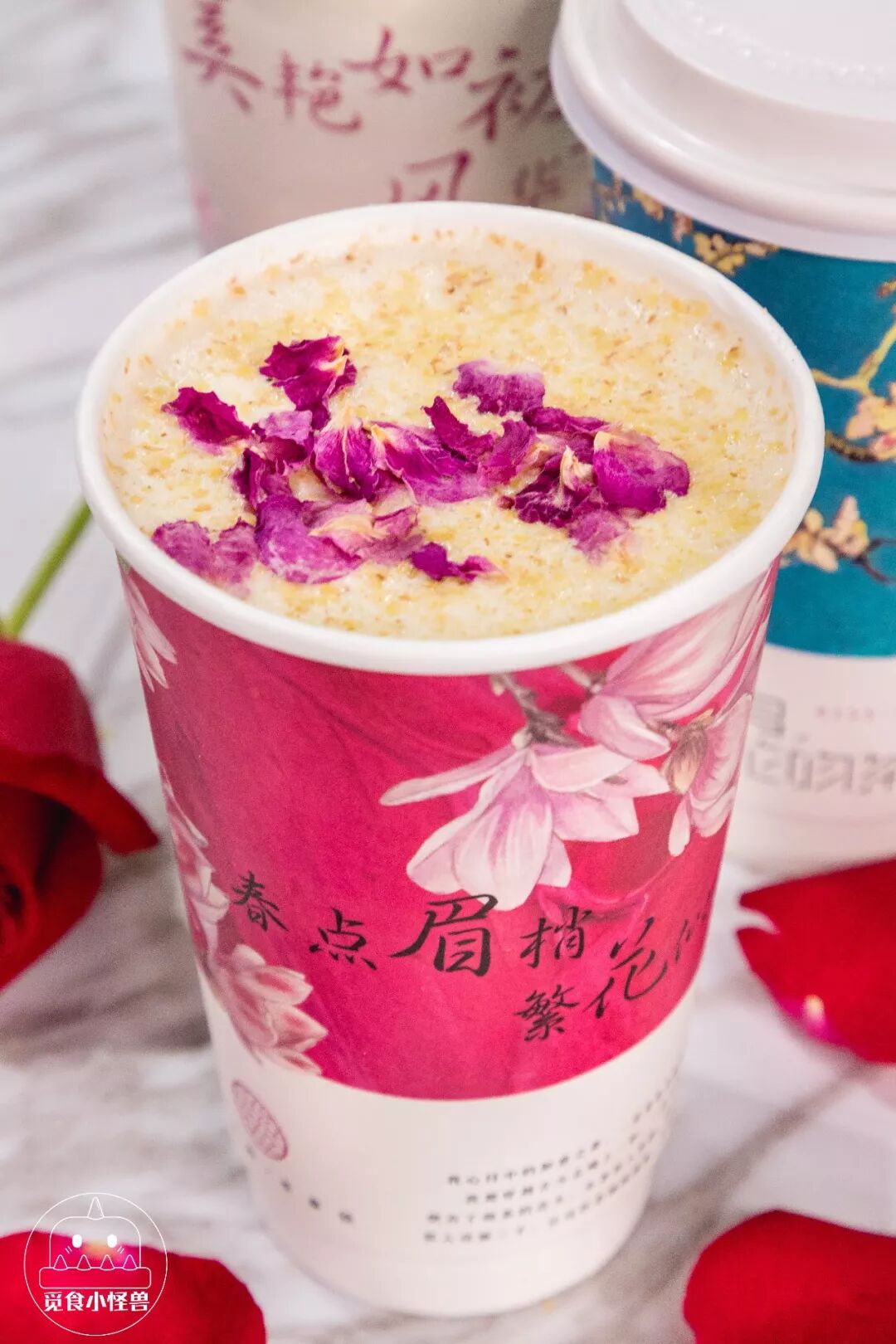 在茶底上加入“奶泡”,再装扮上几瓣“玫瑰花瓣”,还有些“犹抱琵琶半遮面”的意味。