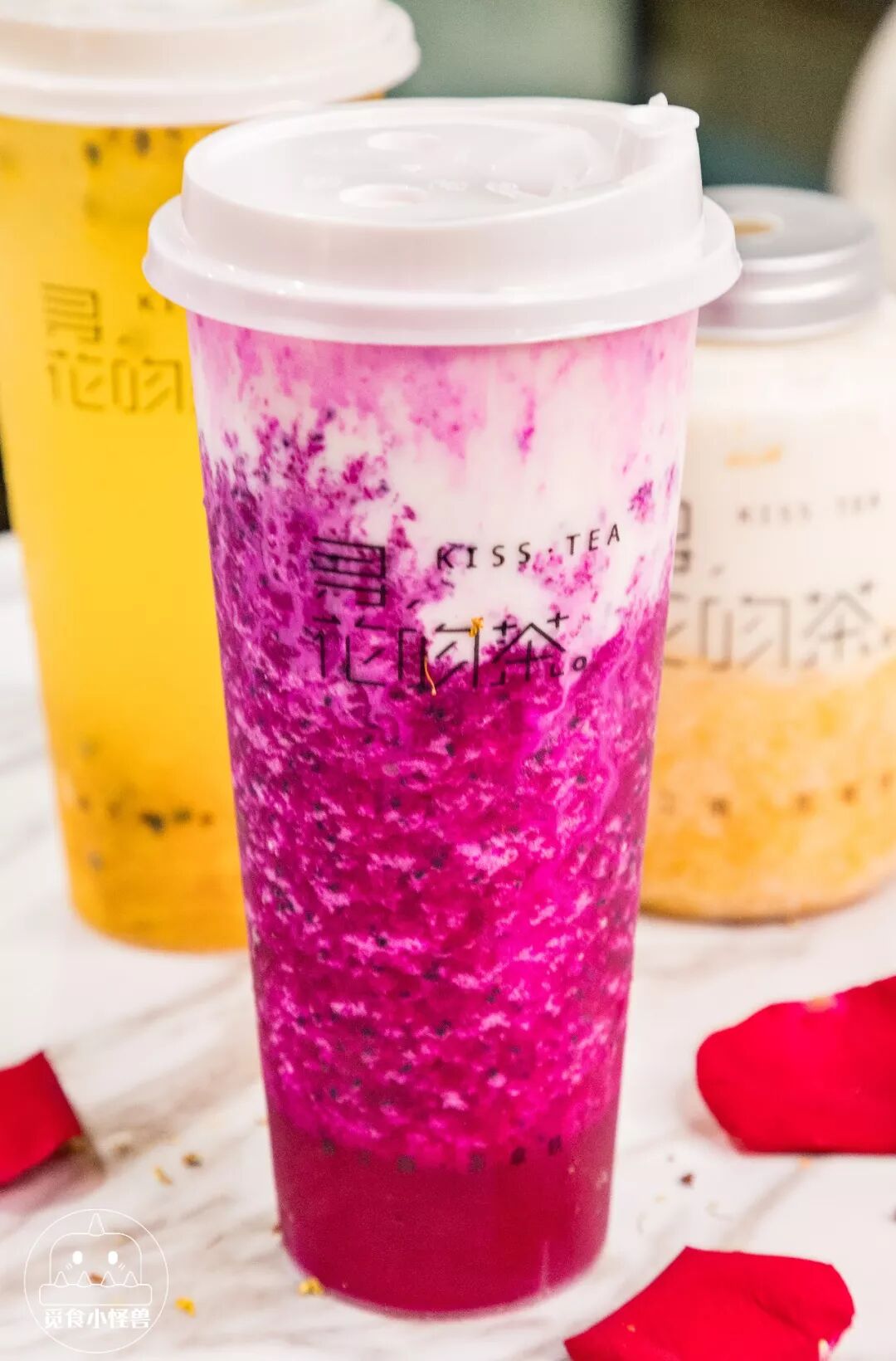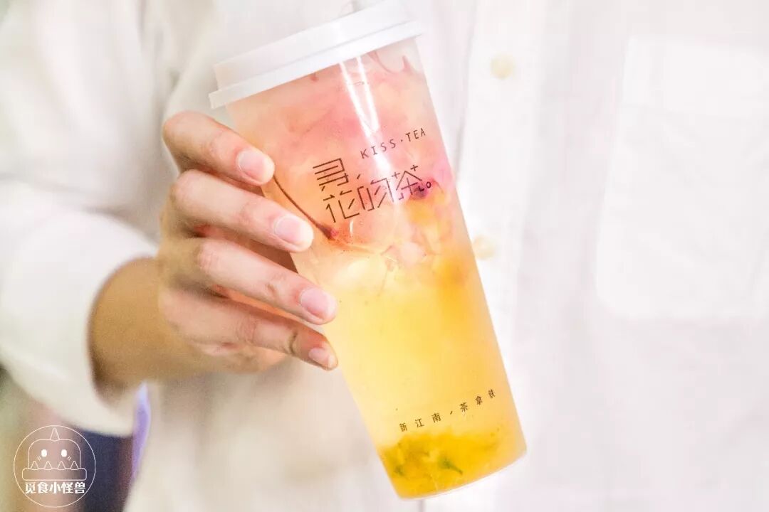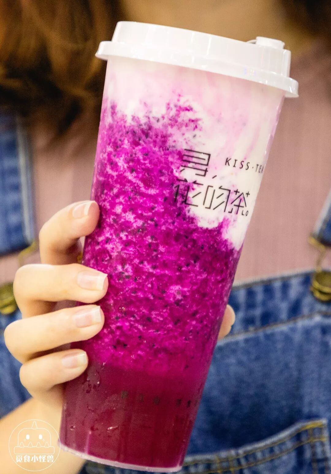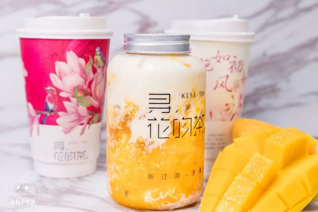 今夏最流行的“水果脏脏茶”,“寻花吻茶”也提供了芒果、火龙果、奇异果和凤梨四种口味,我pick了芒果口味。