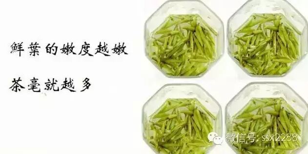 这种绒毛含有的茶多酚、氨基酸等营养物质非常丰富,通常,鲜叶的越老,上面的茶毫也就越少,反之越多;所以根据茶毫的多少可以判断茶叶的嫩度。但是茶叶好坏并不是由茶毫的多少来判断的,绿茶、红茶等都有茶毫,而且不单是这两种茶有,很多茶都有。