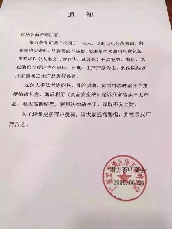 多名茶商认为,看到起诉人出示的诉讼资料整齐划一,手法如出一辙,短信模板相同,只不过每次的起诉人不同,他们怀疑这些人是团伙操作。