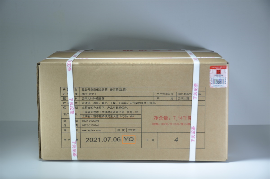 【茶品规格】357g/片×5片/提×4提/件=7.14kg/件(20片/件)
