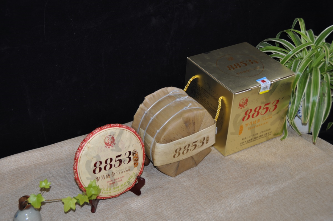 细数历年的8853饼茶,2001、2008、2016年均使用当年或前一年的布朗毛茶原料拼配,仅2012年的8853饼茶完全使用自然陈化数年的布朗陈料毛茶拼配。