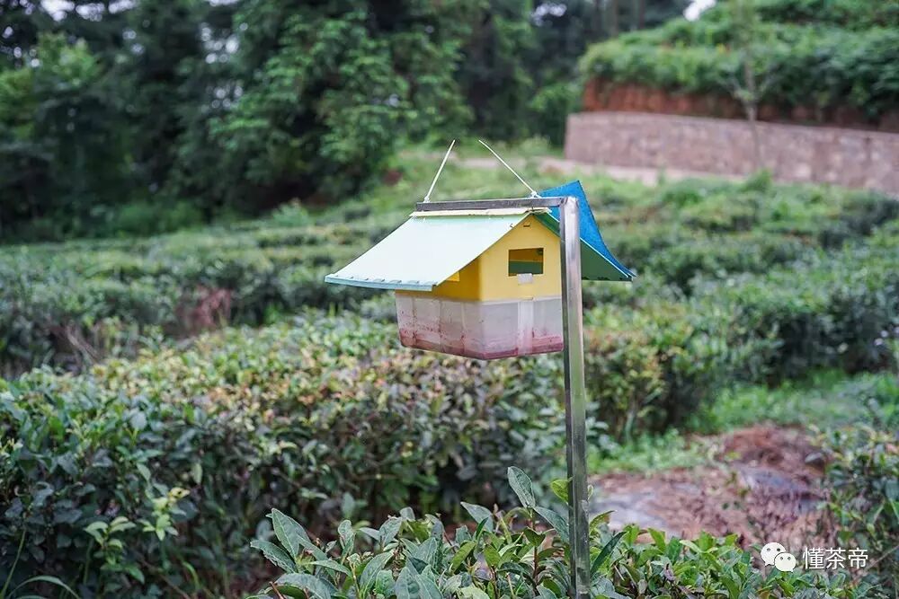 ▲这叫“诱虫小灯”,也在贵州茶区推广,像间小房子,是不是很可爱?