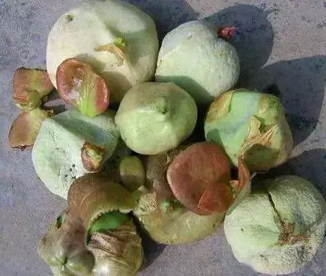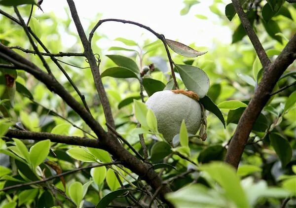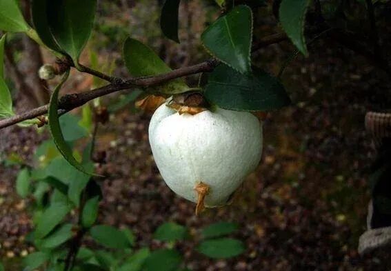 这是一种变异之后的茶果。正常的茶果味道非常苦,不具有食用价值,而变异之后的茶果会慢慢变成乳白色,果子也会变软很多,吃起来有一股微苦味道,但过一会却有一丝丝甜味,吃起来非常可口。在我们小时候,每年摘茶叶都会满山寻找这种果子,不过它的数量不是很多,因此想吃也是要碰运气。