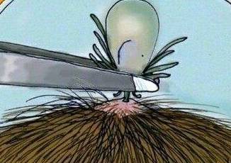 情急之下,爸爸用小镊子将虫子夹出来,但只夹出半截虫体。第二天来到医院,医护人员用专用夹子将蜱虫头部的残留部分慢慢挑取出来。