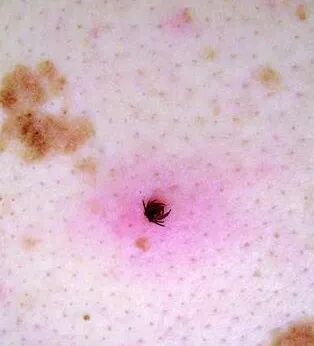 后经医生检查确认,这颗活的“黑痣”就是蜱虫。蜱虫的头部和两只“脚”已经深深埋入她的皮肤,周围的皮肤组织已经出现感染和红肿,如果放任不管它会越钻越深。胡女士不得不通过手术,挖除部分感染组织。