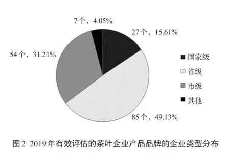 本次有效评估的中国茶叶企业产品品牌共计173个。品牌具体省份分布见图1,品牌所属企业类型见图2。