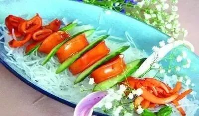 原料:目鱼500克,黄瓜30克,白萝卜200克。