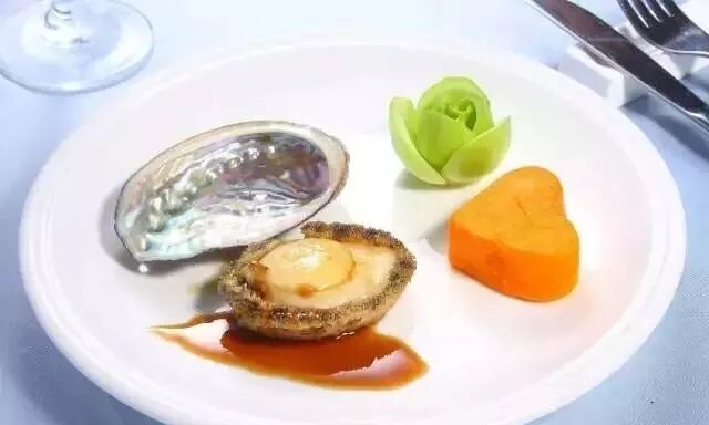 原料:大连鲍10只,龙井茶叶20克,豹子头包菜20克,小米椒节少许。