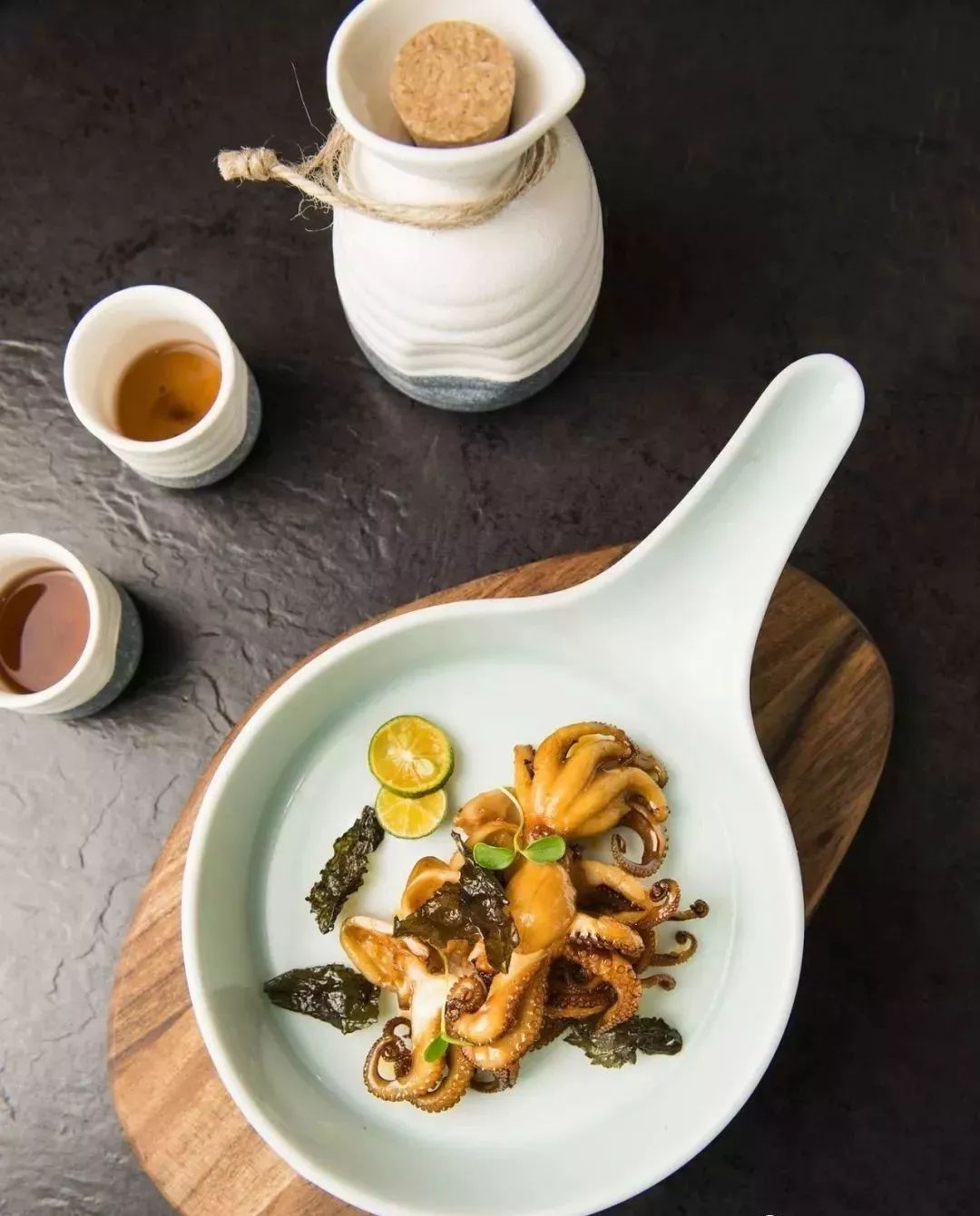 1.此菜是在五香卤水的基础上加普洱茶增香卤制成的。把八爪鱼清洗干净,入沸水锅里飞水后,再放在用普洱茶调制的茶香卤水锅里,小火慢卤至熟。