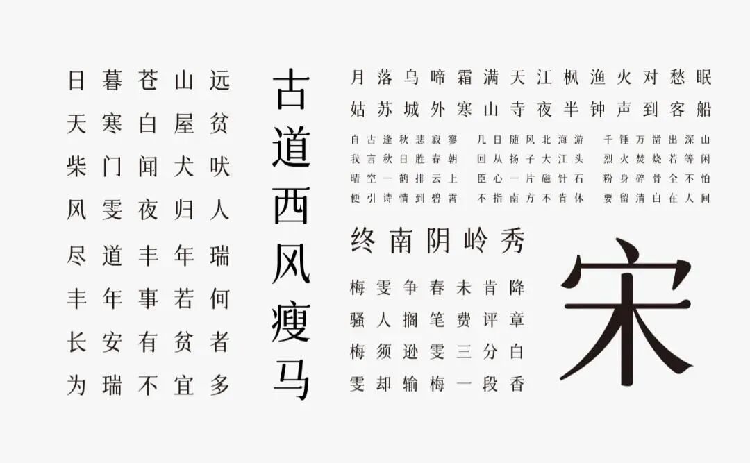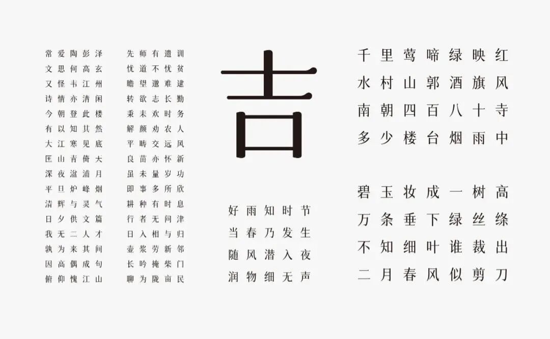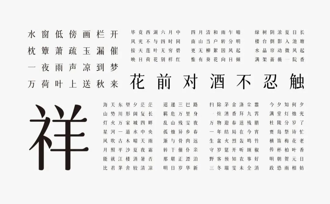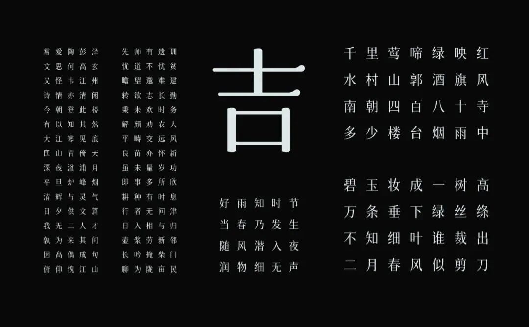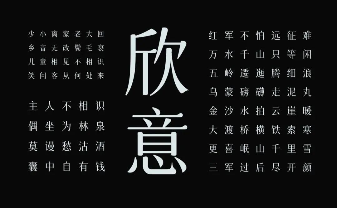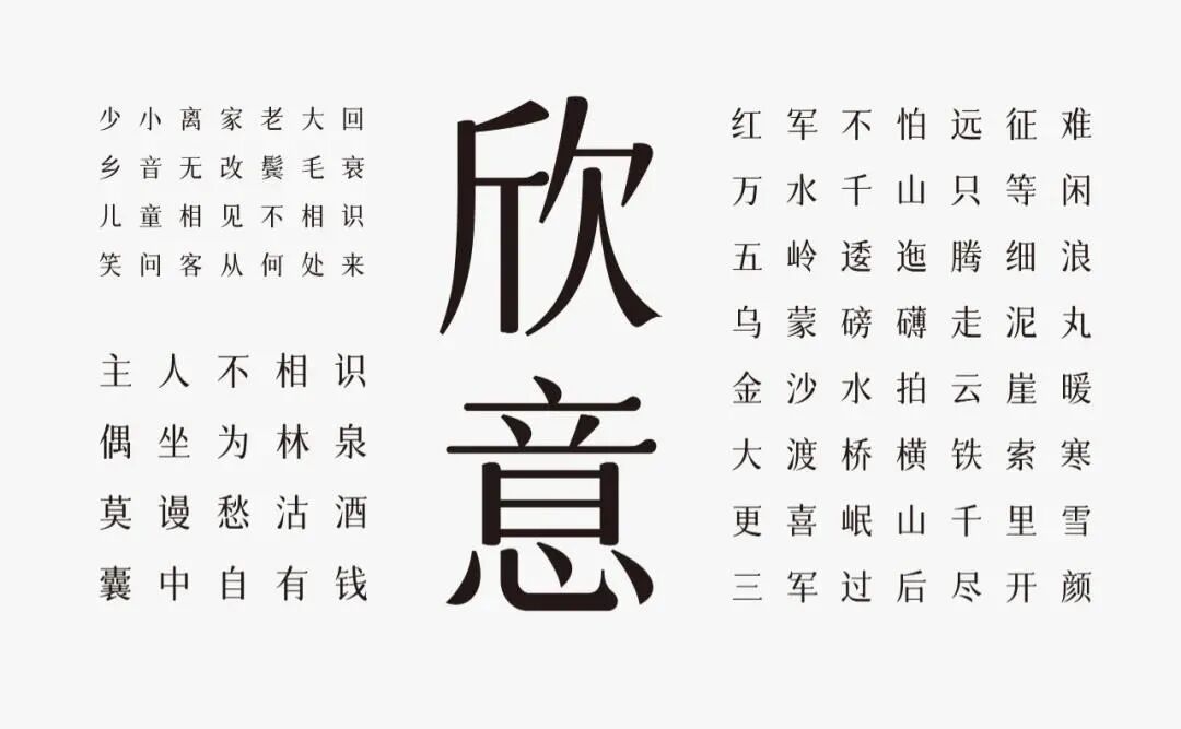 做设计每天都会和各种字体打交道,有很多好看的字体的确很好看!可是没有版权,如果贸然使用,必然会造成各种问题!所以,作为一枚纯生设计师,要随时养成收集字体的习惯。不过现在的设计师很多都是佛系设计师,对于收集这种事情来说还是太困难了!所以在这里我就为你们收集了一些免费的字体,来帮助那些佛系设计师找字难的困扰!文末有下载方式!今天介绍的字体是由邹乐文设计师设计的,并且免费使用。 欣意吉祥宋 这套字涵盖国家GB2312编码标准的6763个中文字符,52个英文字符,10个阿拉伯数字,若干个标点符号,按需添加若干生僻字,共7000余字符。这是一套宋体风格的标题字,风格整体偏圆润古风,目前市场上免费商用的宋体字,除了思源宋体,好像就是思源宋体的修改版,没有专门设计风格的宋体字。邹乐文邹老师也表示:这款字体命名原本打算跟风格相同,欲名为“润宋体”,但没有什么特殊意义,毕竟免费字体可遇不可求,2020年确实是困难的一年,从年头到年尾非常艰难的度过,后来决定今天发布后,想到两个词“吉祥”与“平安”,纠结了好一会,最终定为“吉祥宋”,全名:字体圈欣意吉祥宋,很优雅的一个名字,我很喜欢,祝您今后每一年都能吉祥如意平安顺遂!话不多说,来看看这款字体的实操吧!