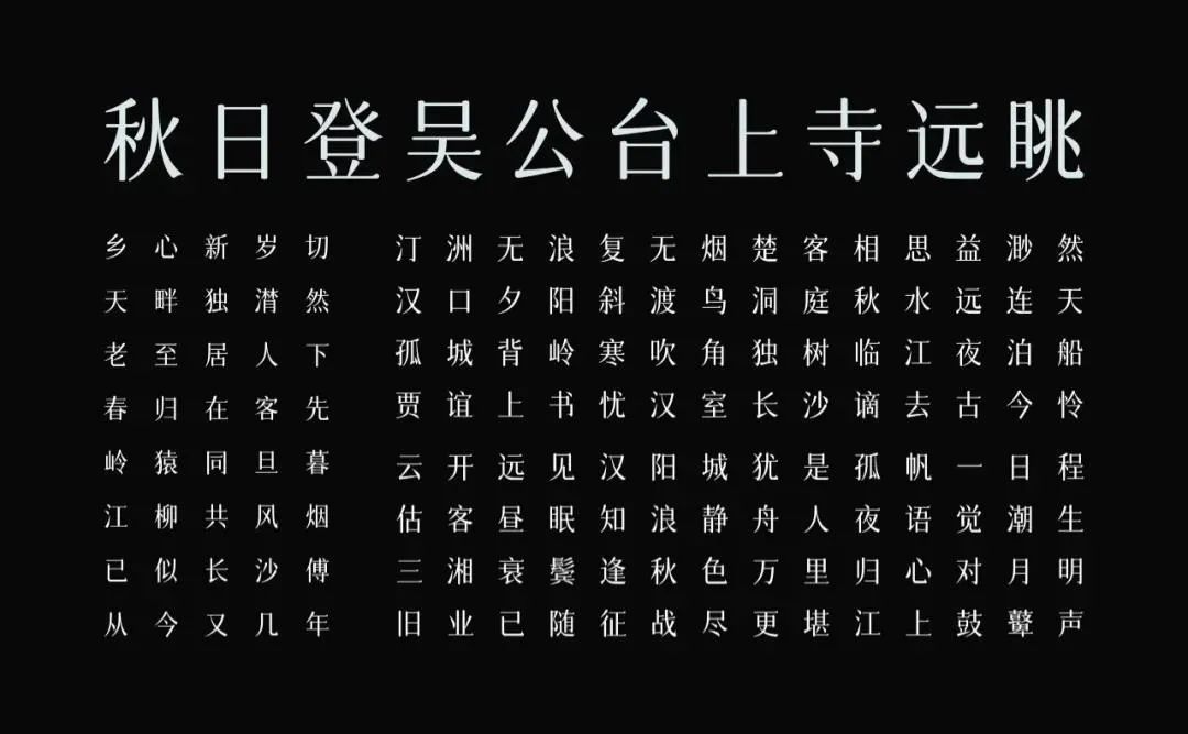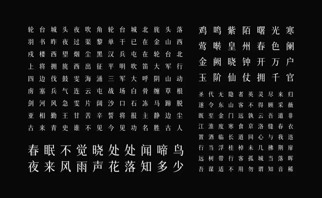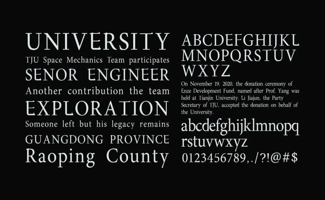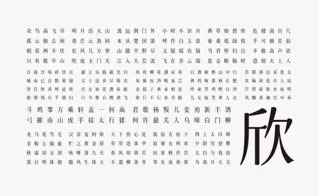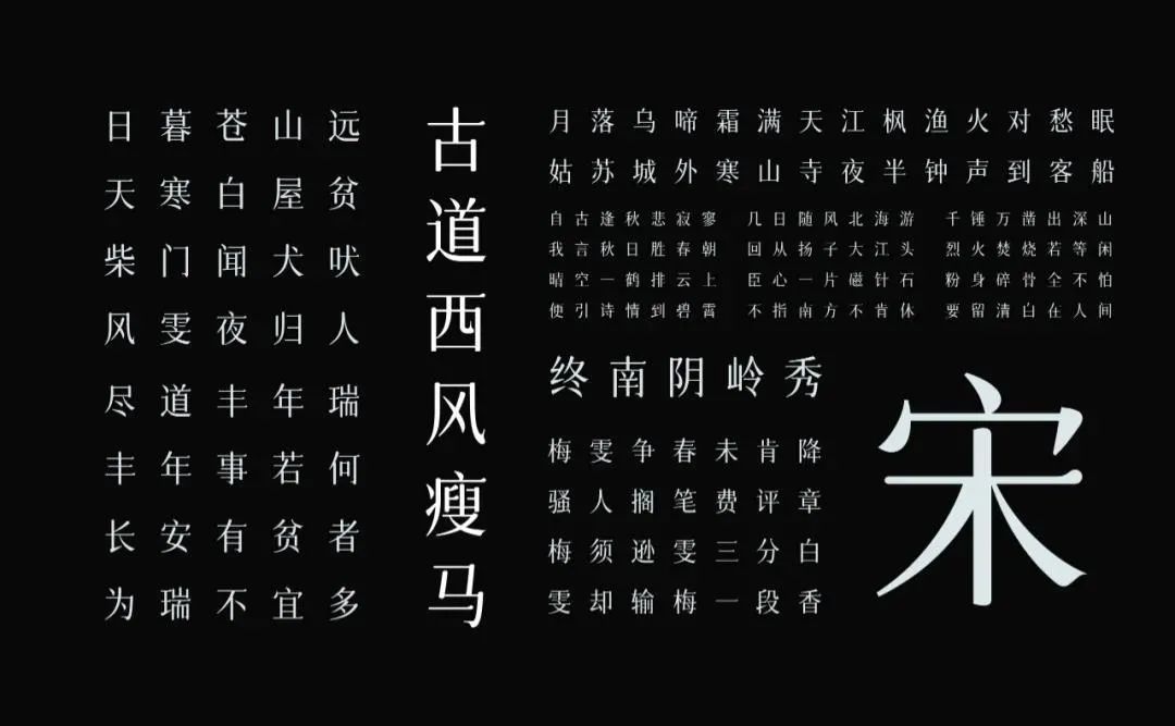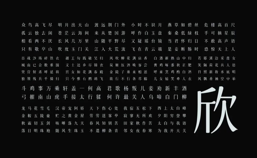 做设计每天都会和各种字体打交道,有很多好看的字体的确很好看!可是没有版权,如果贸然使用,必然会造成各种问题!所以,作为一枚纯生设计师,要随时养成收集字体的习惯。不过现在的设计师很多都是佛系设计师,对于收集这种事情来说还是太困难了!所以在这里我就为你们收集了一些免费的字体,来帮助那些佛系设计师找字难的困扰!文末有下载方式!今天介绍的字体是由邹乐文设计师设计的,并且免费使用。 欣意吉祥宋 这套字涵盖国家GB2312编码标准的6763个中文字符,52个英文字符,10个阿拉伯数字,若干个标点符号,按需添加若干生僻字,共7000余字符。这是一套宋体风格的标题字,风格整体偏圆润古风,目前市场上免费商用的宋体字,除了思源宋体,好像就是思源宋体的修改版,没有专门设计风格的宋体字。邹乐文邹老师也表示:这款字体命名原本打算跟风格相同,欲名为“润宋体”,但没有什么特殊意义,毕竟免费字体可遇不可求,2020年确实是困难的一年,从年头到年尾非常艰难的度过,后来决定今天发布后,想到两个词“吉祥”与“平安”,纠结了好一会,最终定为“吉祥宋”,全名:字体圈欣意吉祥宋,很优雅的一个名字,我很喜欢,祝您今后每一年都能吉祥如意平安顺遂!话不多说,来看看这款字体的实操吧!