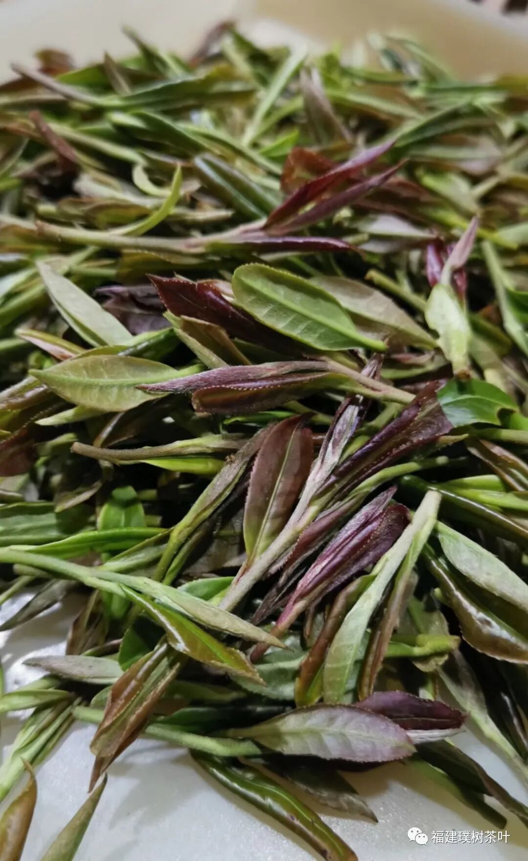其二,从外形上与其他大白茶有明显的区别,叶张细长偏薄,叶脉较粗(采摘时部分茶青颜色暗红偏紫,这是因这类茶的花青素含量较高,其所含的Υ-氨基丁酸和α-氨基酸也较高,易为人体吸收(它具有强抗氧化功能,能有效抑制油脂性氧化物的溢出),这也是小白茶的优势所在);