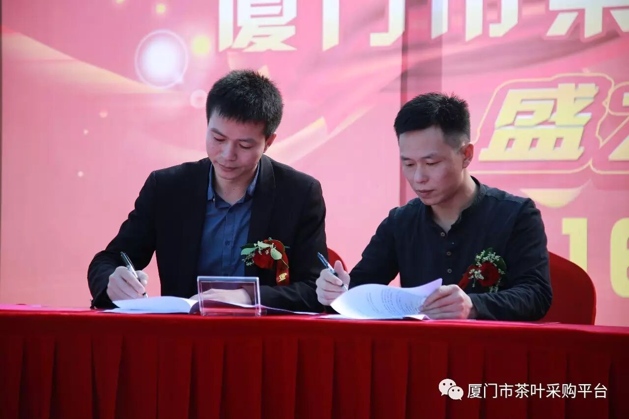 在开业庆典上,25名合伙人现场进行签约仪式,并接受平台执行董事詹兴木授牌,标志着厦门市茶叶采购平台正式进入运营。