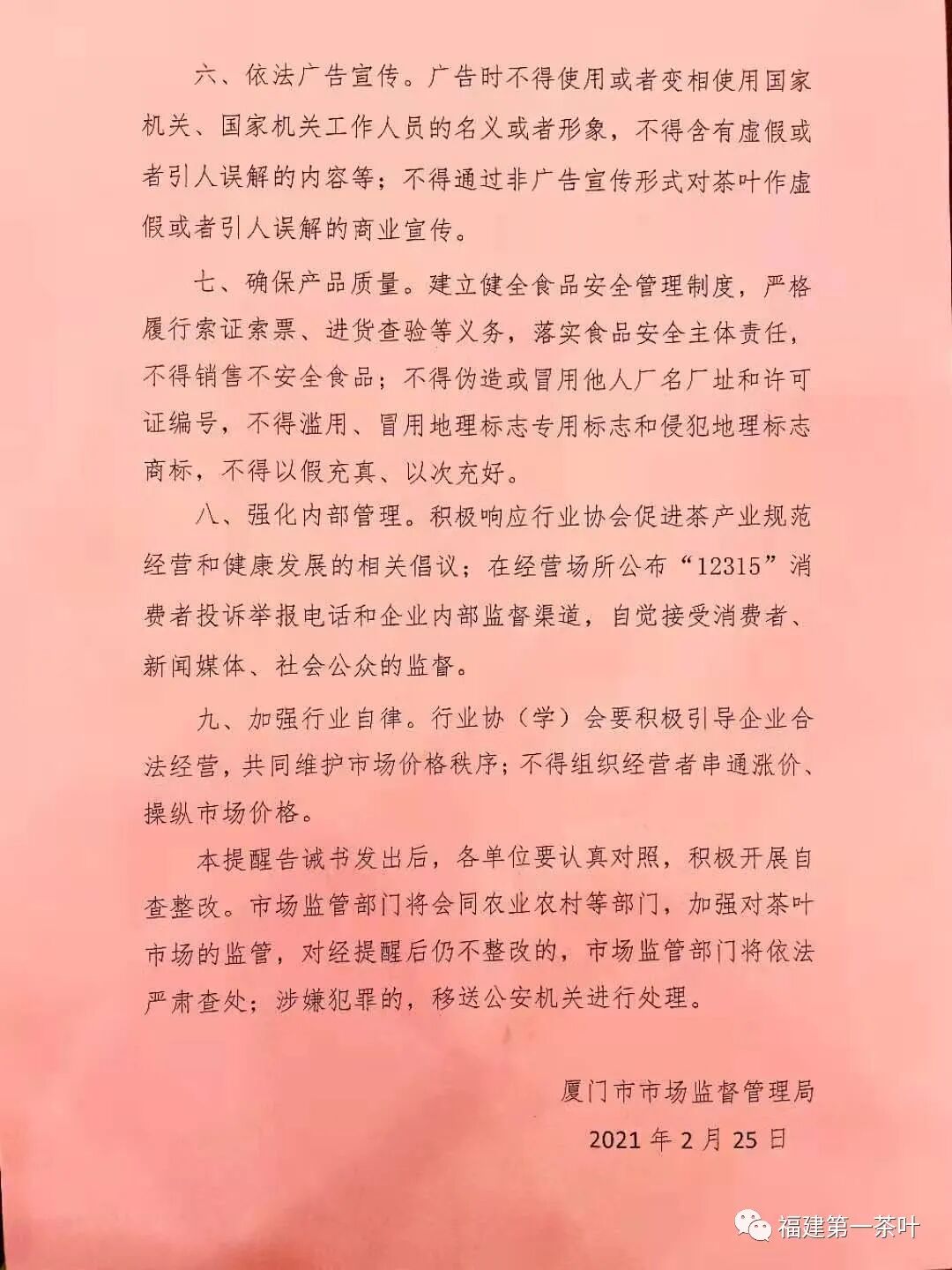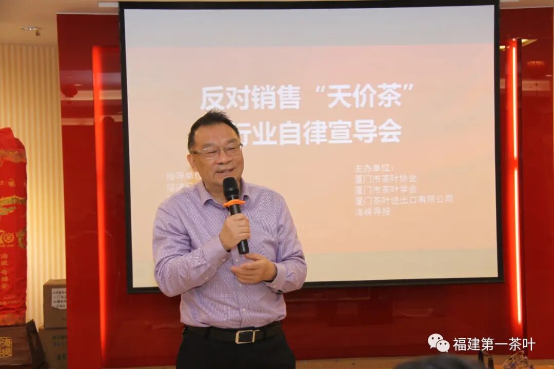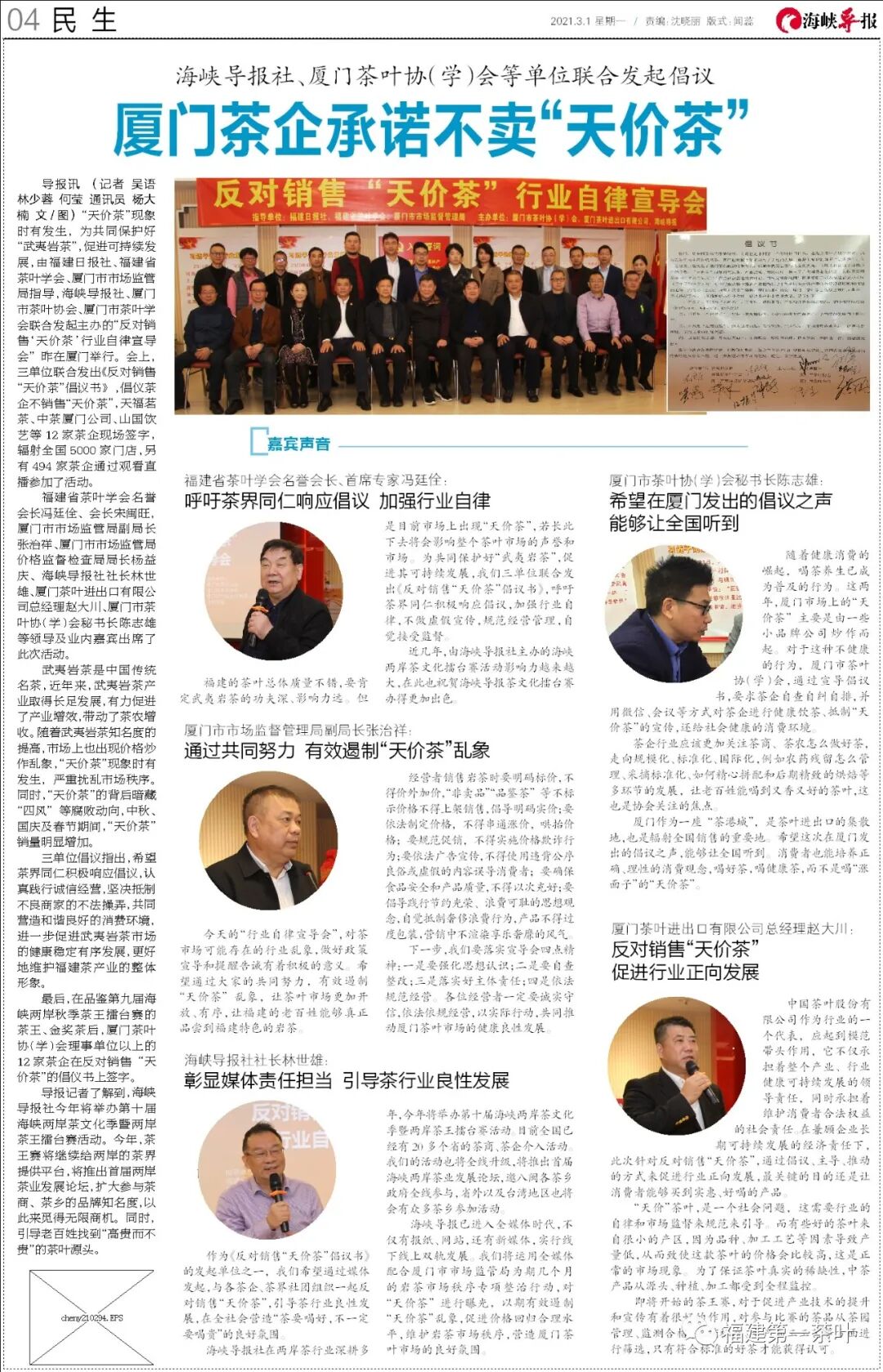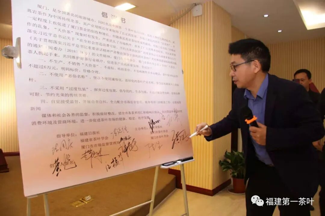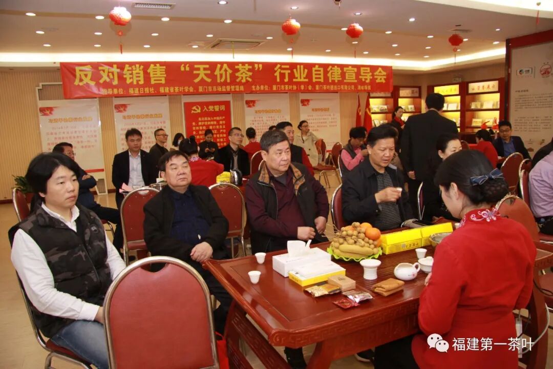 “天价茶”现象时有发生,为共同保护好“武夷岩茶”,促进可持续发展,由福建日报社、福建省茶叶学会、厦门市市场监管局指导,海峡导报社、厦门市茶叶协会、厦门市茶叶学会联合发起主办的“反对销售‘天价茶’行业自律宣导会”于2021年2月28日在厦门举行。