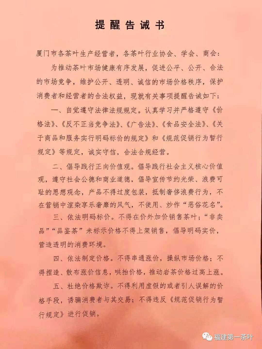 随着健康消费的崛起,喝茶养生已成为普及的行为。这两年,厦门市场上的“天价茶”主要是由一些小品牌公司炒作而起。对于这种不健康的行为,厦门市茶叶协(学)会,通过宣导倡议书,要求茶企自查自纠自排,并用、会议等方式对茶企进行健康饮茶、抵制“天价茶”的宣传,还给社会健康的消费环境。