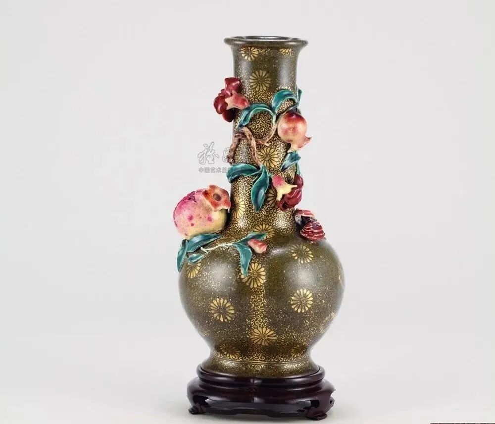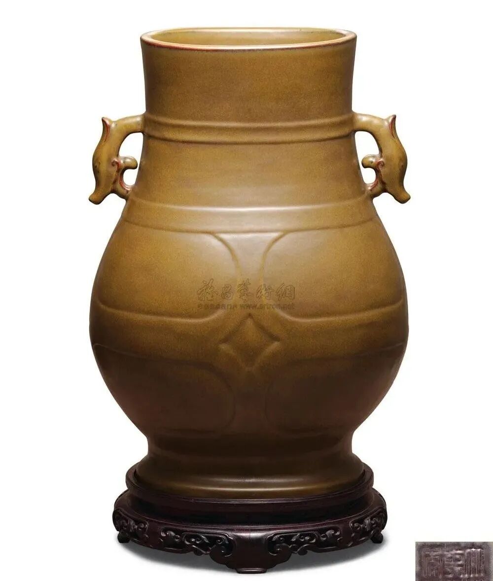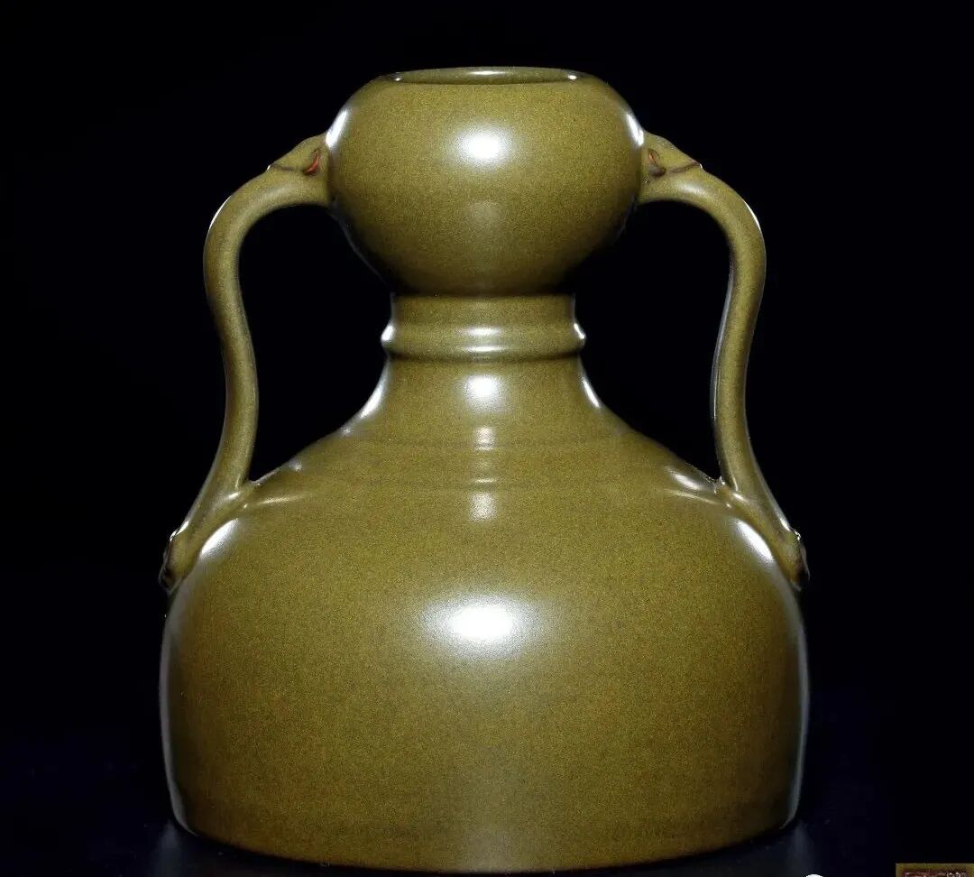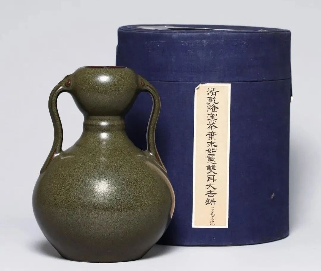 清乾隆 茶叶末如意耳出戟橄榄瓶