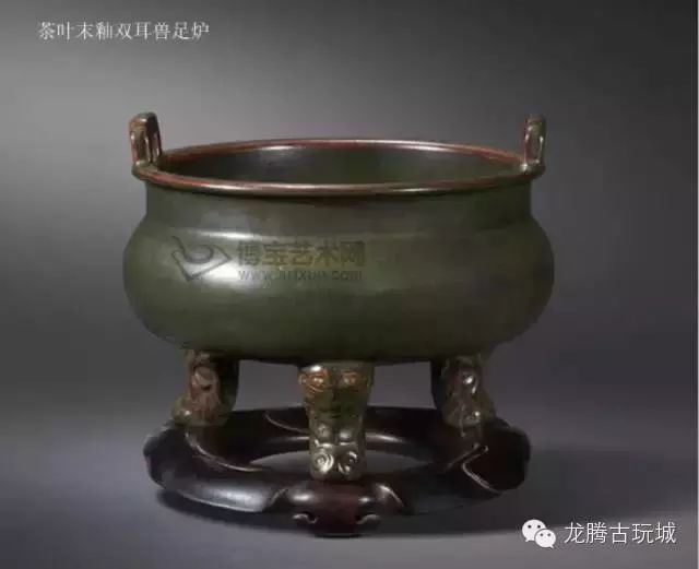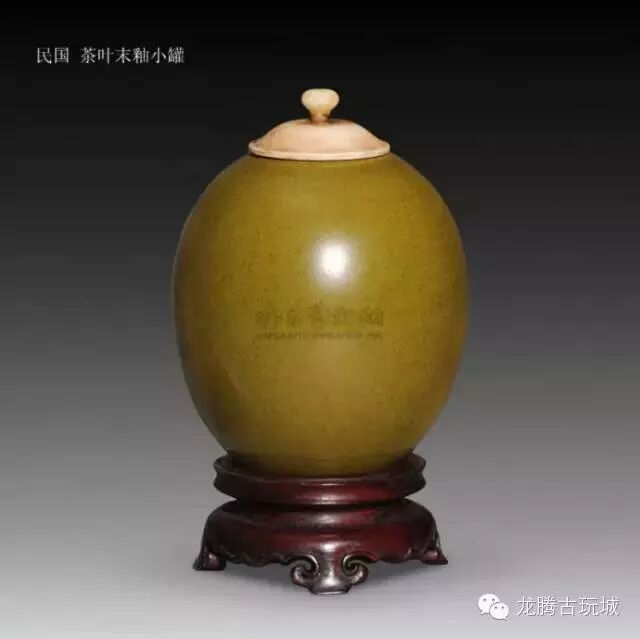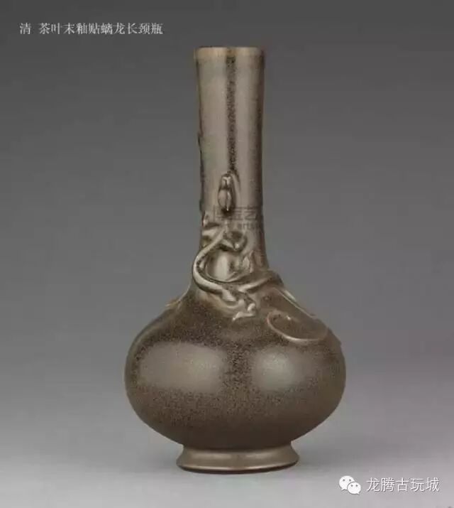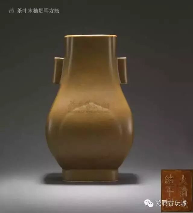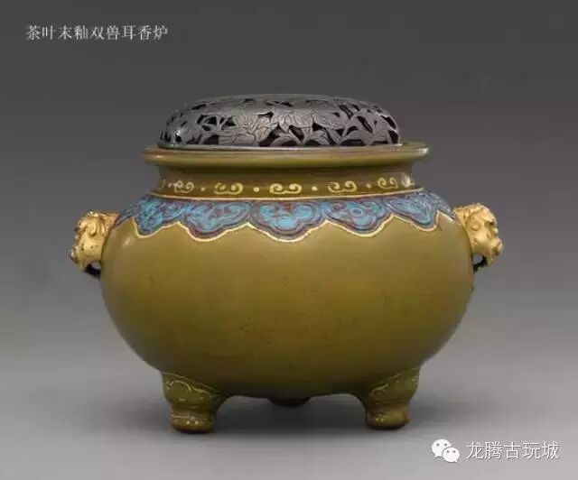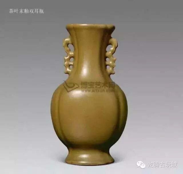 茶叶末釉是我国古代铁结晶釉中重要的品种之一,起源于唐代黑釉,初似为烧黑釉瓷过火而出现的特殊品种,并非有烧造。明御器厂所产茶叶末釉,釉色黄润,带黑色或黑褐色斑点,似鳝于鱼皮色,称“鳝鱼黄”。清代茶叶末釉制品多为景德镇官窑所烧,传世品中,以雍正和乾隆时期最为多见,并以乾隆时的烧制最为成功。雍正时制品多偏黄,有茶无末,称“鳝鱼皮”;乾隆时则茶末兼有,釉色偏绿者居多,俗称“蟹甲青”、“茶叶末”等,也有的挂古铜锈色,具有青铜器的沉着色调,常被用来仿古铜器,称“古铜彩”。