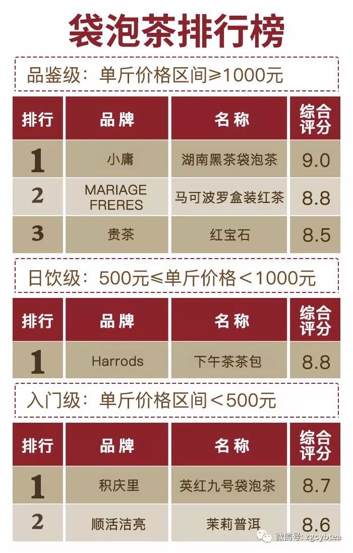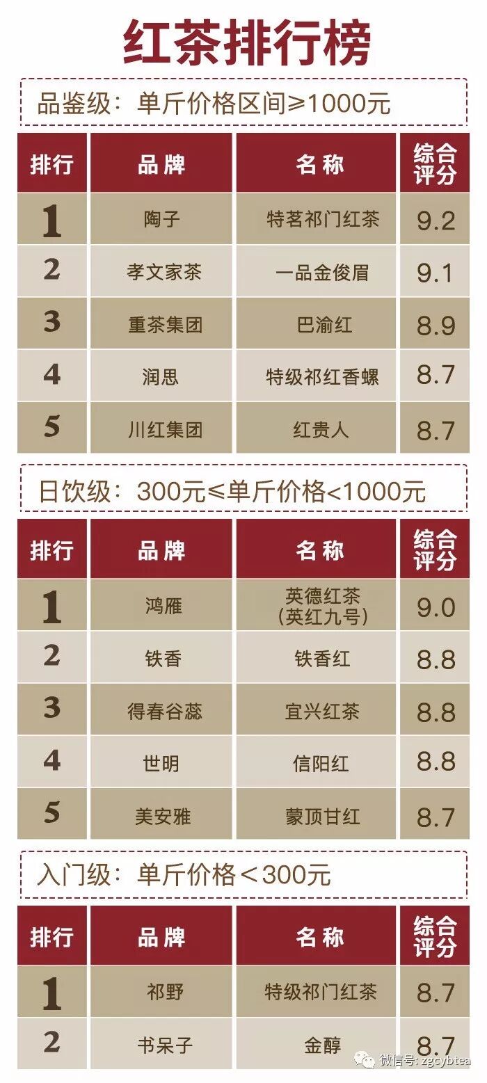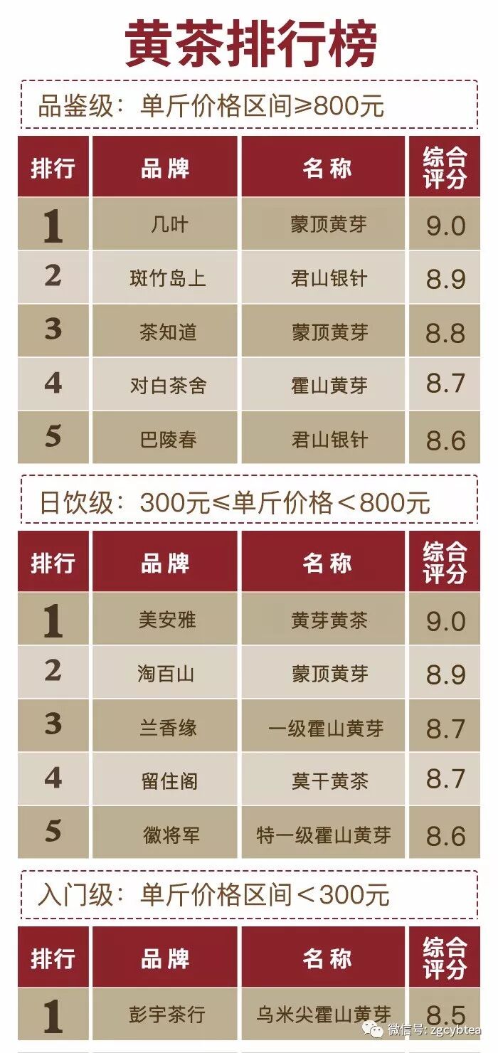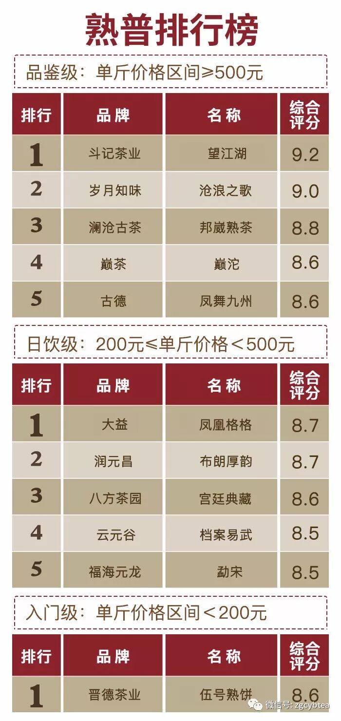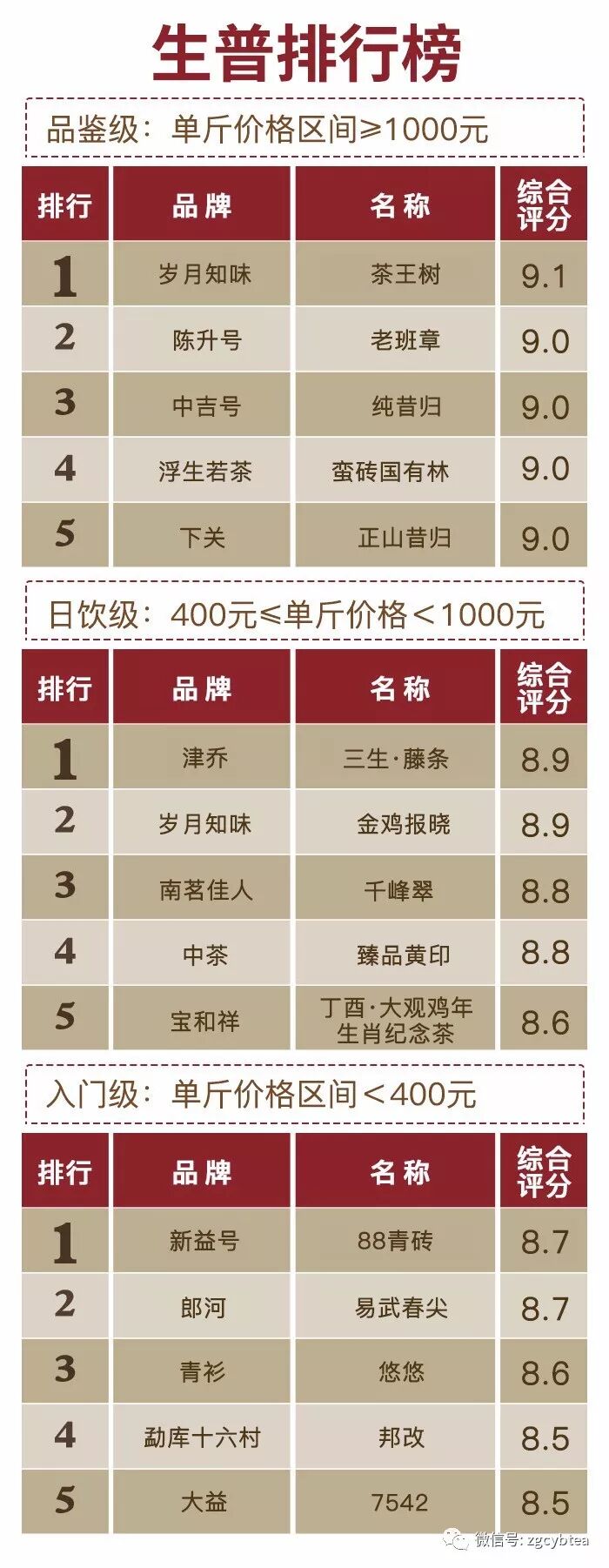 为此,全新的榜单,是以每个茶叶品类各自的价格梯度,把各个茶类划分为入门级、日饮级和品鉴级,这三大榜单体系,每个榜单最多排前5名。