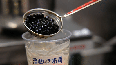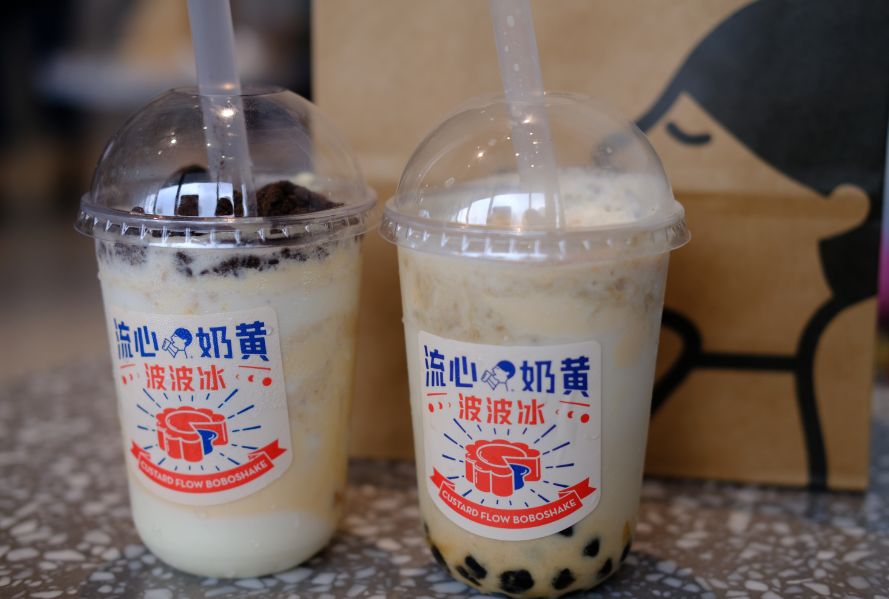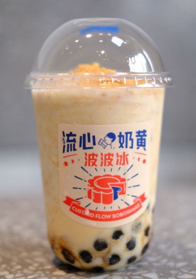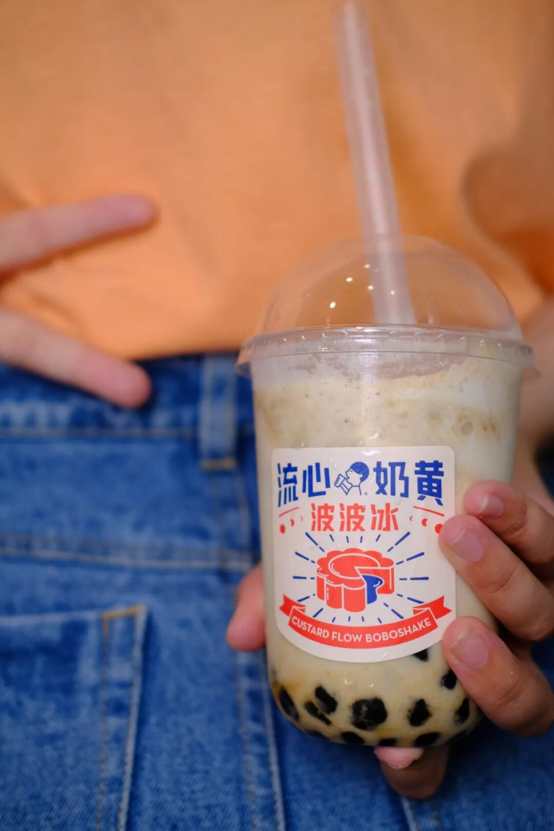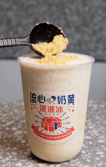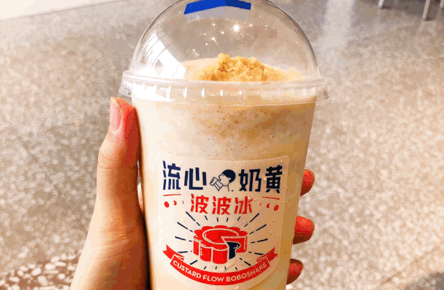 流心奶黄波波冰底部铺满了super浓郁的奶黄酱,加入经典黑糖波波,再注入冰凉奶底,最后的点睛之笔是撒上满满一层咸蛋黄味饼干碎。