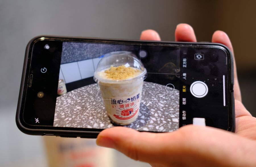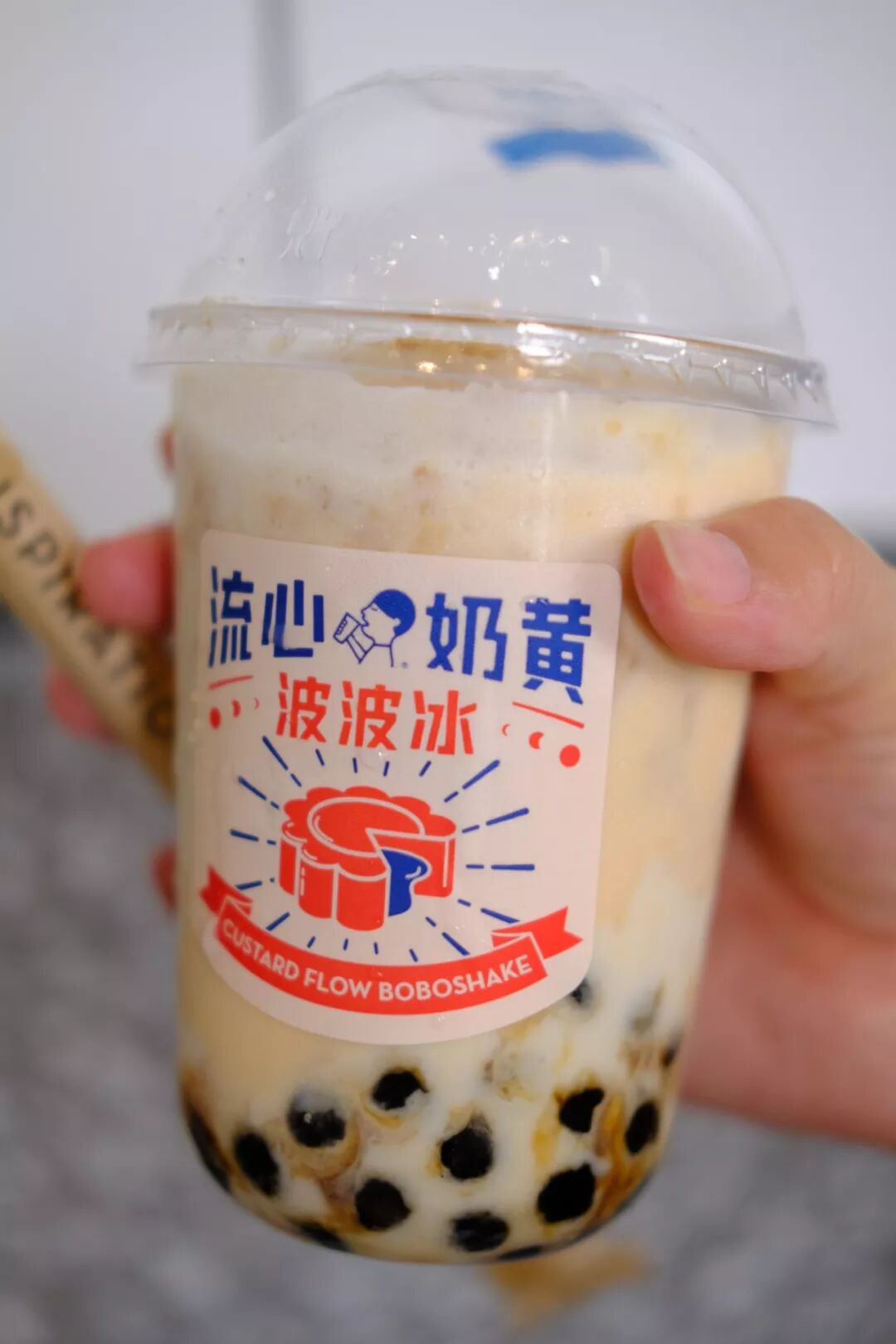 小编已经迫不及待捧起这杯料满分的【流心奶黄波波冰】了!猛的吸入一大口,咸蛋黄味的奶昔口感瞬间充盈着口腔的每一个角落。