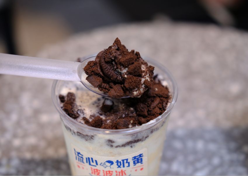 必不可少的隐藏菜单等你创新~小编选择了流心奶黄波波冰去掉黑波波加入脆波波和奥利奥碎,浓郁的巧克力与奶黄的二重奏来袭,简直是人间美味!