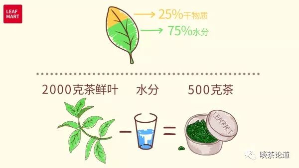茶树鲜叶主要是由水分和干物质组成,其中水分约占75%,干物质约占25%,所以呢,理论上制成一斤的茶叶需要4斤茶树鲜叶哦