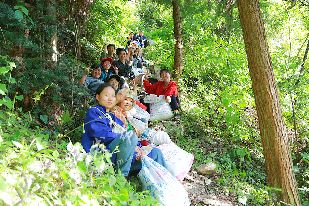 巴东县小神农架村几十名村民穿梭在丛林里