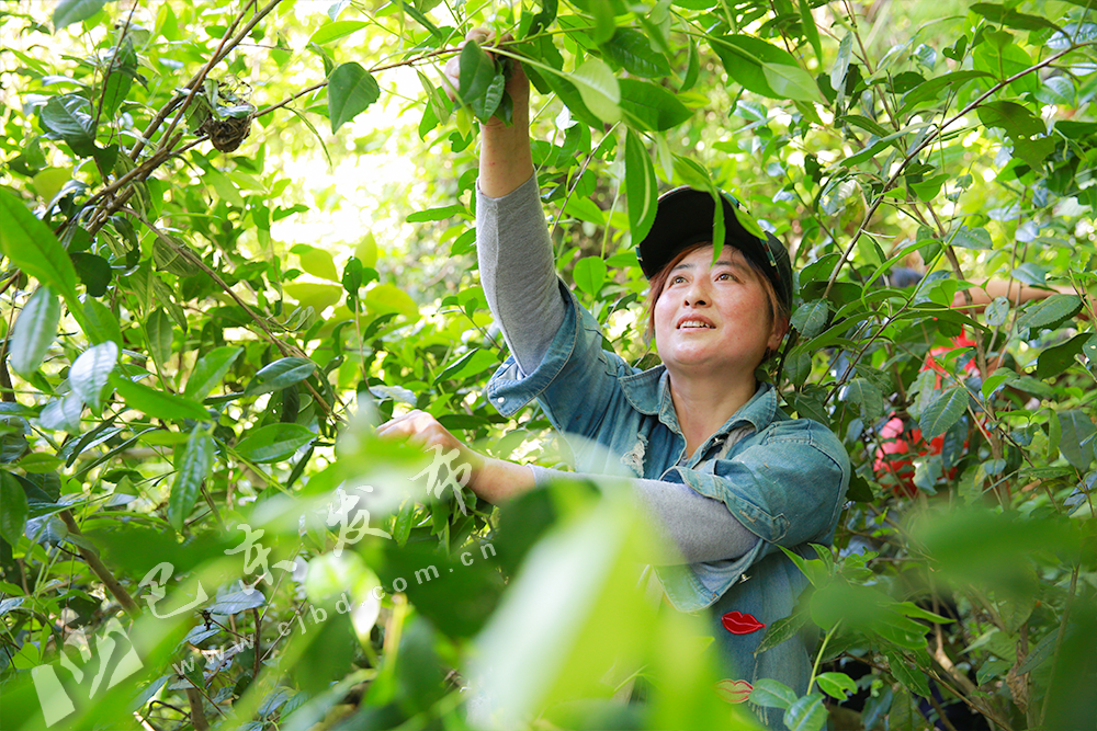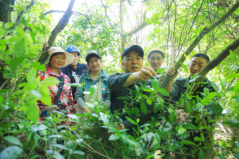 “今年野茶长得好,茶叶儿又大又嫩。”村民刘古菊停下手中的活儿,靠在一株碗口粗的野茶树上,吃了一包方便面,又开始忙碌起来。她说从早上5点多进山,要到下午4点多才下山,还要去村委会交茶,晚上8点多才能回去吃饭。