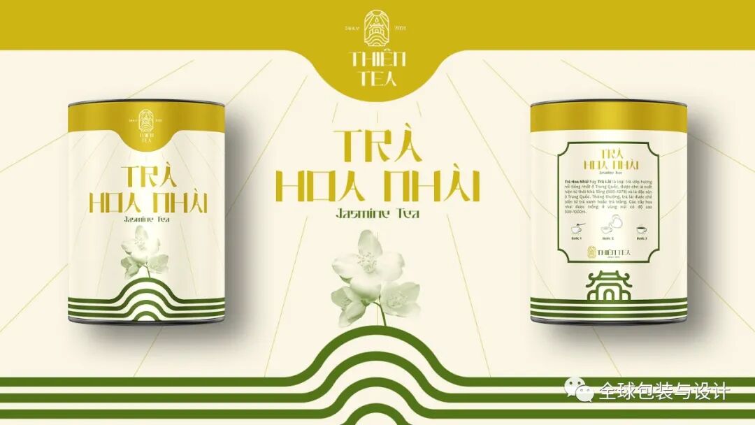 标志中使用的意象是太阳、水和茶山,指的是天、地、水在Thien Tea精粹茶产品中的交融,其中有一个位于泰国阮省-越南的潭泉门意象,潭泉门承载了佛教“相关”、“非保守”、“中性”三种“见道”的观念,可能表现出美(假)、无(无常)和二者的中间,这里的潭泉门意象也表现出了越南古代知识的特征。