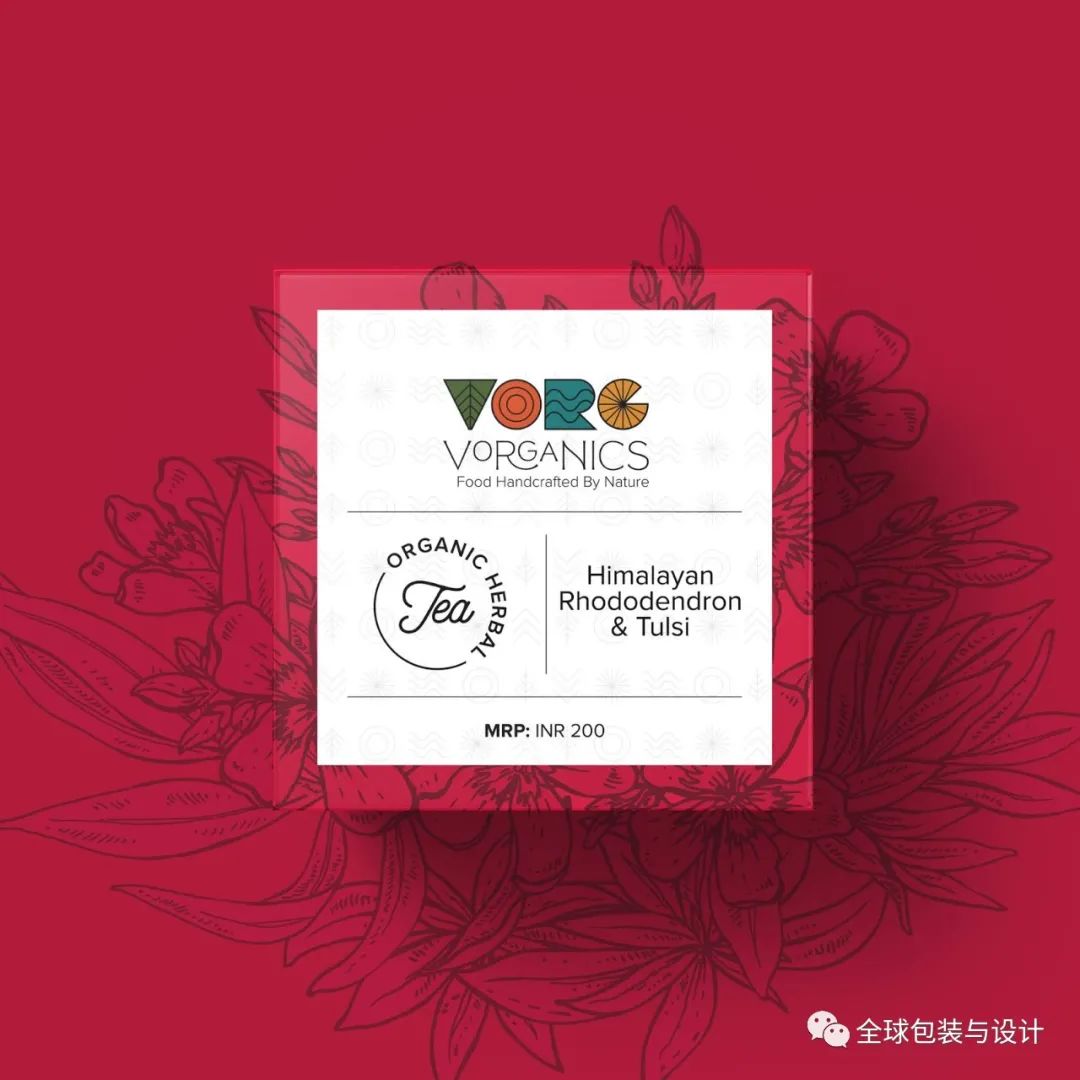 标志中以几何图案使用了树、土壤、水和太阳等标志,以突出VOrganics 与印度农民的紧密联系和对当地农产品的信任。使用的颜色是食物的颜色,比如绿色,代表健康、有机和健康;橙色代表激励,蓝色代表信任,黄色代表乐观。
