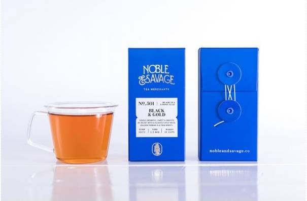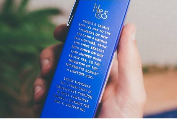 Noble & Savage 的纸盒包装系列以蓝色作为底色,在视觉上带给人们一种沉静的观感。银色的花体字书写标题,显得优雅古典,正面在空白处用黑色字体,侧面用银色字体来标注信息,虽然字数不少,但却不显繁冗。用绳扣作为封口,增加了开封时的仪式感,同时也增添了一种古朴风。整体设计简约精致,为产品增添品质感。